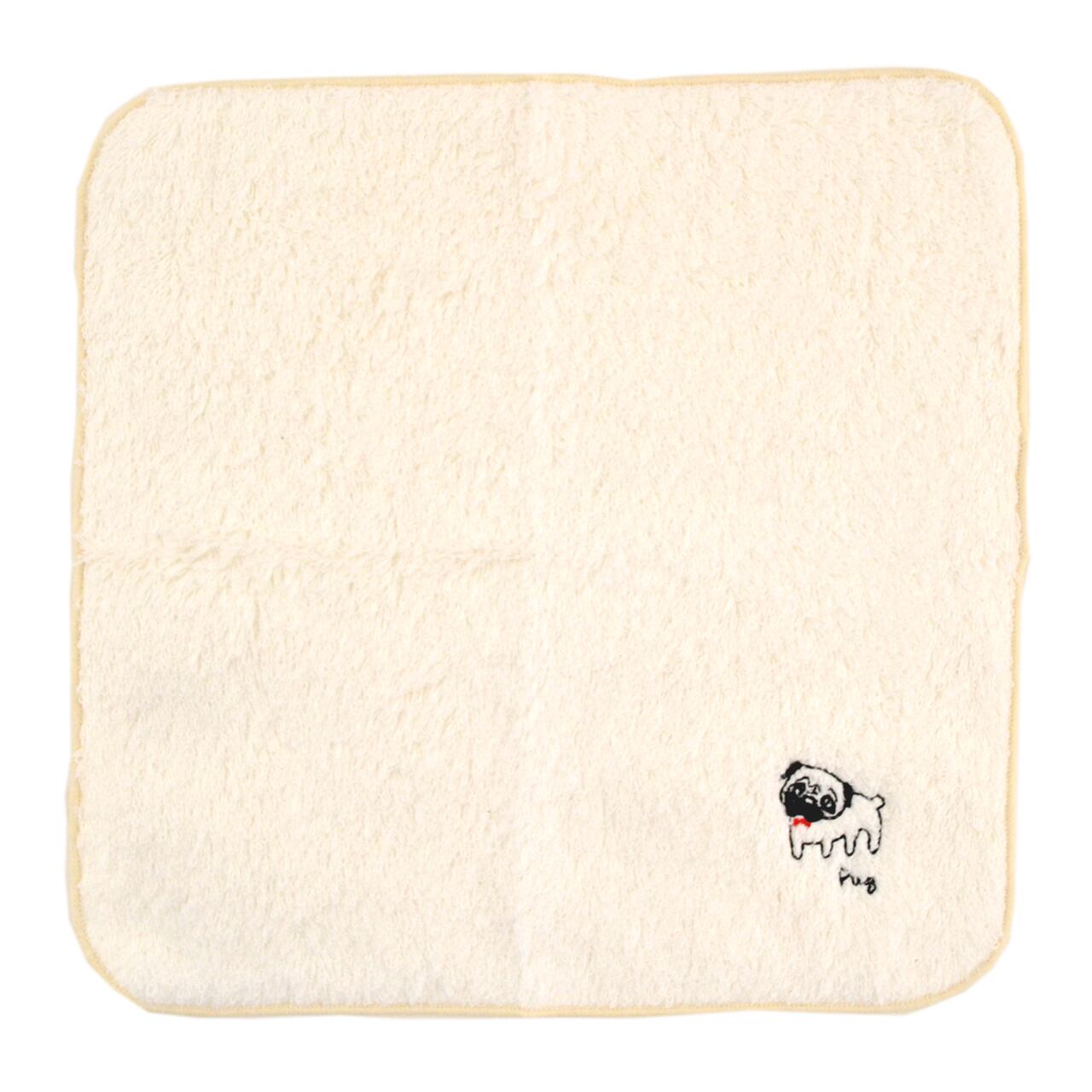 ふわふわハンカチ(パグ刺繍)